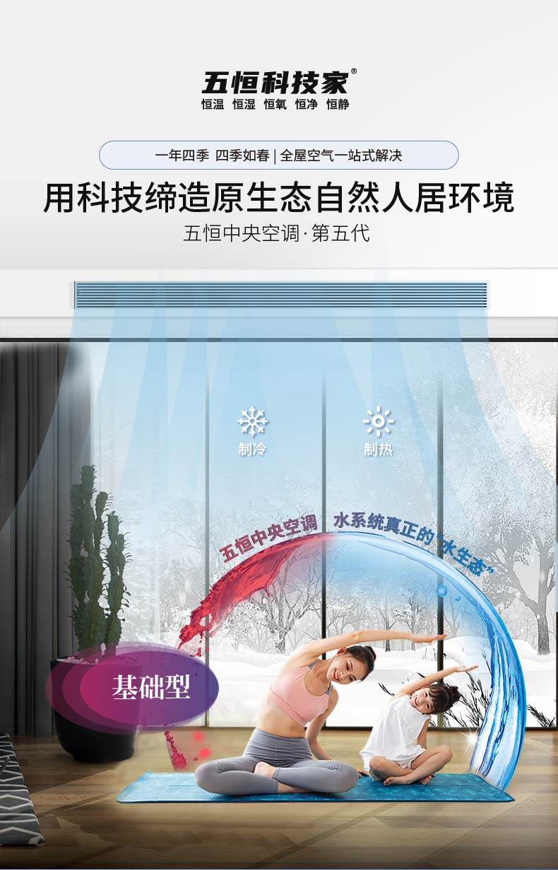 五恒科技家居環能系統是由冷熱源主機、地面調溫系統、除濕系統、新風凈化系統、智能控制系統五大核心組成。