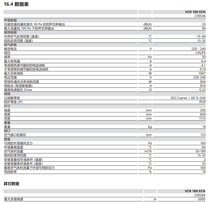 吊頂式中央新風(fēng)系統(tǒng)VCR 180