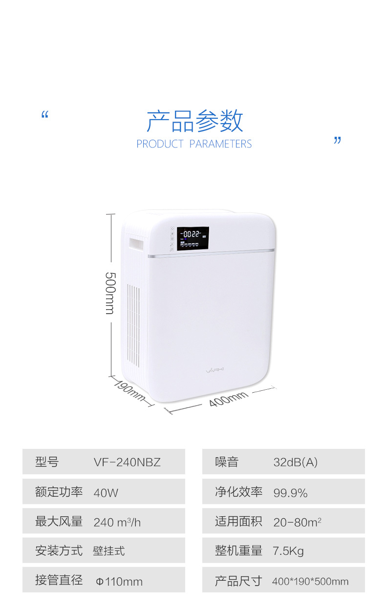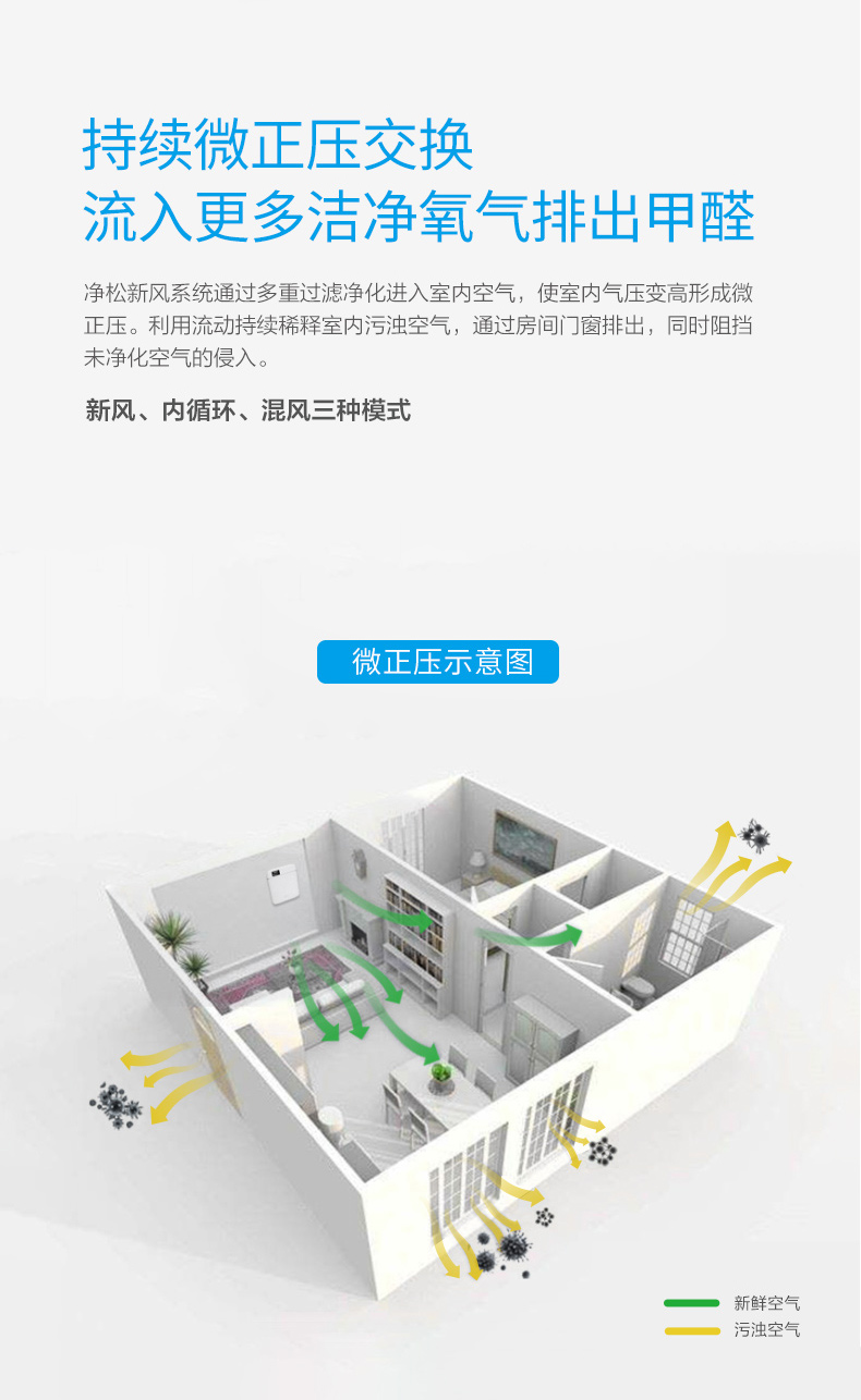 凈松新風機壁掛式 新風系統家用全屋空氣凈化 除塵殺菌除甲醛霧霾 靜音新風換氣機臥室