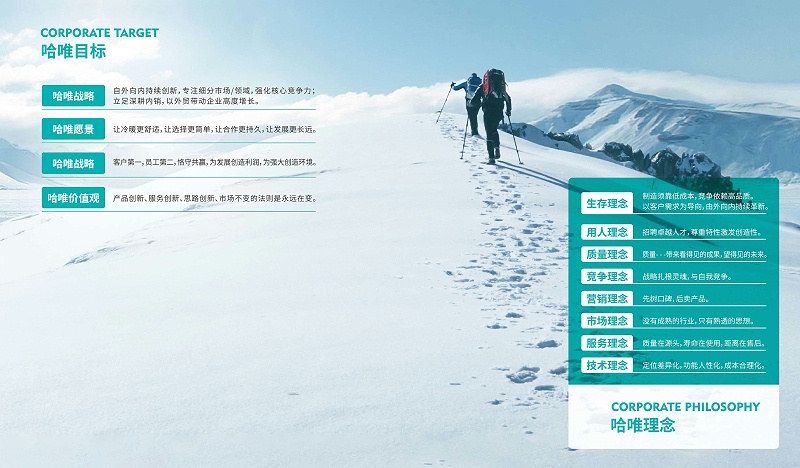 公司介紹哈唯新能源科技有限公司是一家專注于新能源與環保事業的創新型現代化 企業,公司自主研發,生產、銷售、服務于一體,主營空氣源熱泵熱水、地板采暖、冷暖空調、空氣凈化等產品,是空氣源熱泵行業專業領域技術標桿企業。 研發持續創新,哈唯團隊專注熱泵行業13年,擁有行業多層次、多結構、經驗 豐富的專家團隊和管理團隊,與國內權威檢測機構建立產學研合作平臺,并依托 2016年投入建設的-30°C大型超低溫環境模擬實驗室,保持多項低溫技術創新突破領先,成熟應用于多系列產品。 制造精益求精,哈唯嚴格遵循出口質量標準及國家、行業標準,確保產品趨向 零缺陷,產品多次國抽一次性通過。哈唯擁有全國工業生產許可證、中國制冷空調行業高標準CRAA認證、-30°C低溫實驗室能力評價證書 制造精益求精,哈唯嚴格遵循出口質量標準及國家、行業標準,確保產品趨向 零缺陷,產品多次國抽一次性通過。哈唯擁有全國工業生產許可證、中國制冷空調行業高標準CRAA認證、-30°C低溫實驗室能力評價證書、ISO9001:2015質量管理體系認證、OHSOS18001:2007職業健康安全管理體系認證、ISO14001:2015環境管理 體系認證、五星級售后服務認證證書、五星品牌認證證書、國家級高新技術企業、廣東省“守合同重信用”企業、AAA級信用企業、納稅信用A級榮譽證書、幾十項國家 CCC強制性認證、幾十項專利技術證書等,哈唯多款產品通過高新技術產品認證,取 得中國節能產品認證證書,入選政府釆購目錄。 哈唯地處東莞,輻射全國,產品已經應用到全國各地。公司持續創新和提升低溫供暖技術,相關產品已在吉林、遼寧、內蒙、寧夏、甘肅、青海、新疆、西藏等嚴寒地區廣泛應用,在-30℃極寒條件下強勁持續穩定供暖,節能效果顯著,得到用戶一致認可,產品美譽度不斷提升。 持續快速發展的哈唯,獲得了行業內外的普遍認可,哈唯已經成為中國節能協會會員、廣東產品認證協會會員,東莞質檢品牌共建單位,合肥通用機電院產學研合作單位,熱泵行業知名品牌,屢獲熱泵行業產品創新品牌。 秉承“專注、誠信、以客戶為中心”的經營理念,不斷發展,服務社會哈唯期待與您攜手并進,共創美好藍天,做中國綠色節能可持續發展的見證者,踐行者和重要推動者。