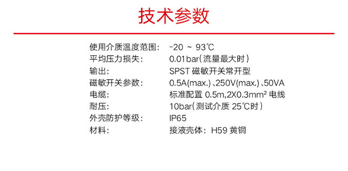 工作原理簡單、直觀、可靠,由于黃銅流量開關內部只有一個移動部件。故其工作狀態穩定。元件無磨損且性能穩定。產品采用高精度、低壓降及長壽命設計。自來水或油中使用,無需過濾器。