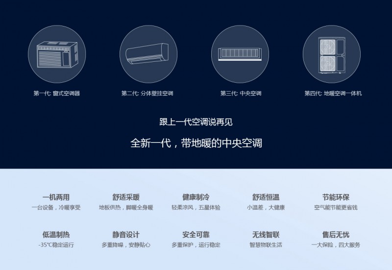 主營產品: 空氣源熱泵、熱泵空調、凈水、新風、智能等產品