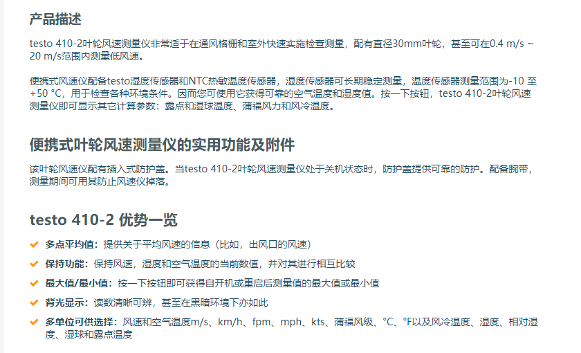 testo 410-2 - 葉輪風速測量儀