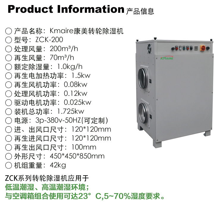1.可精準地達到用戶要求的空氣含濕量,出風溫度由用戶自行控制。